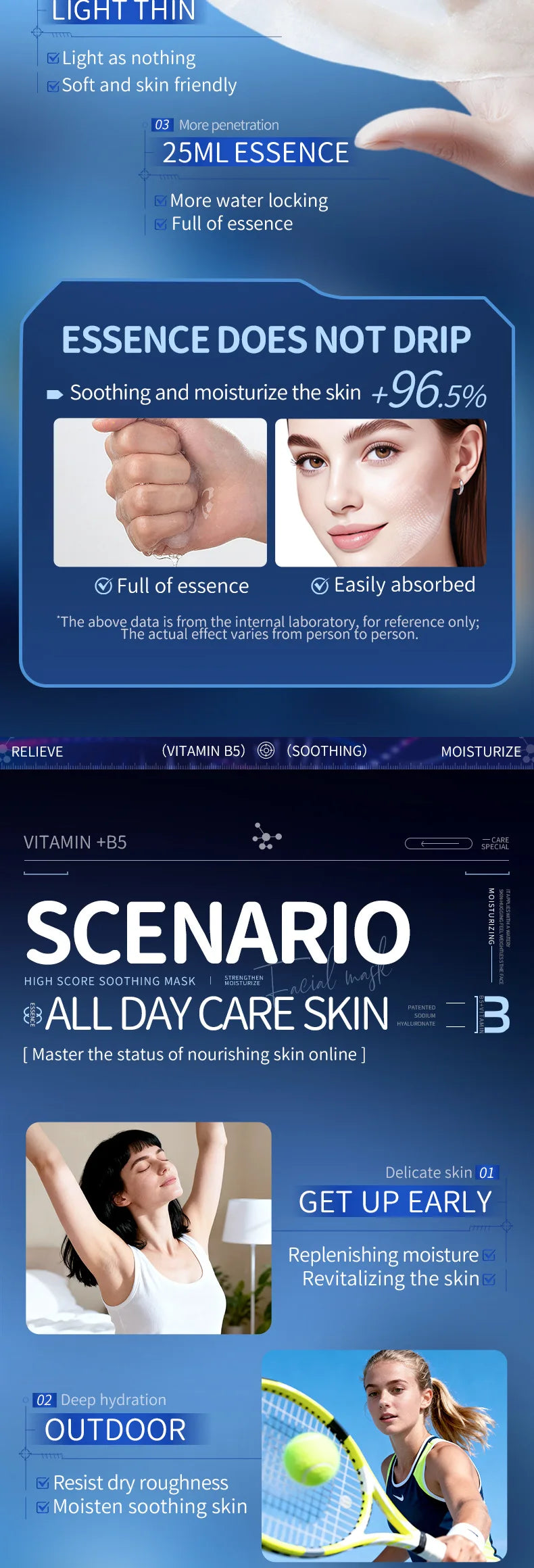 10pcs Vitamin B5 Sheet Mask 25ml - Hydrating & Soothing, Deep Moisture Care for Radiant Skin, Quick Absorption
