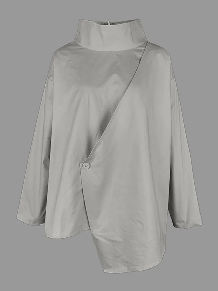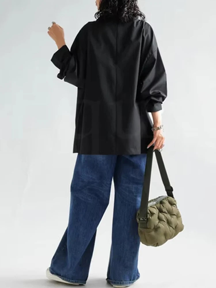 Gymystars 2026 New Black Long Sleeves Loose High Neck T-Shirts Tops Womens Spring Autumn Buttoned Casual Simpie Top
