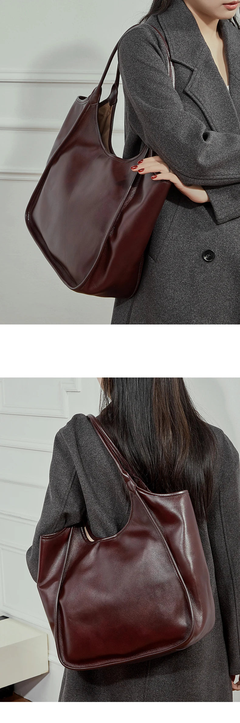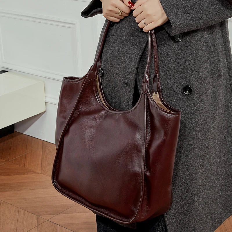 Hifashion Cowhide Genuine Leather Large Tote Shoulder Bags For Women 2026 Luxury Designer Bucket Shopper Office Ladies Handbags
