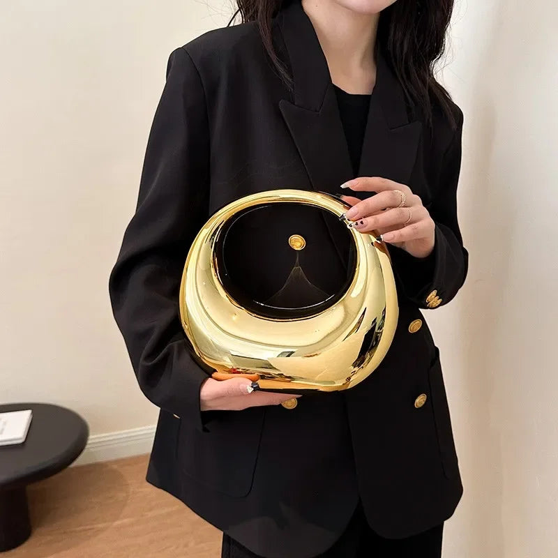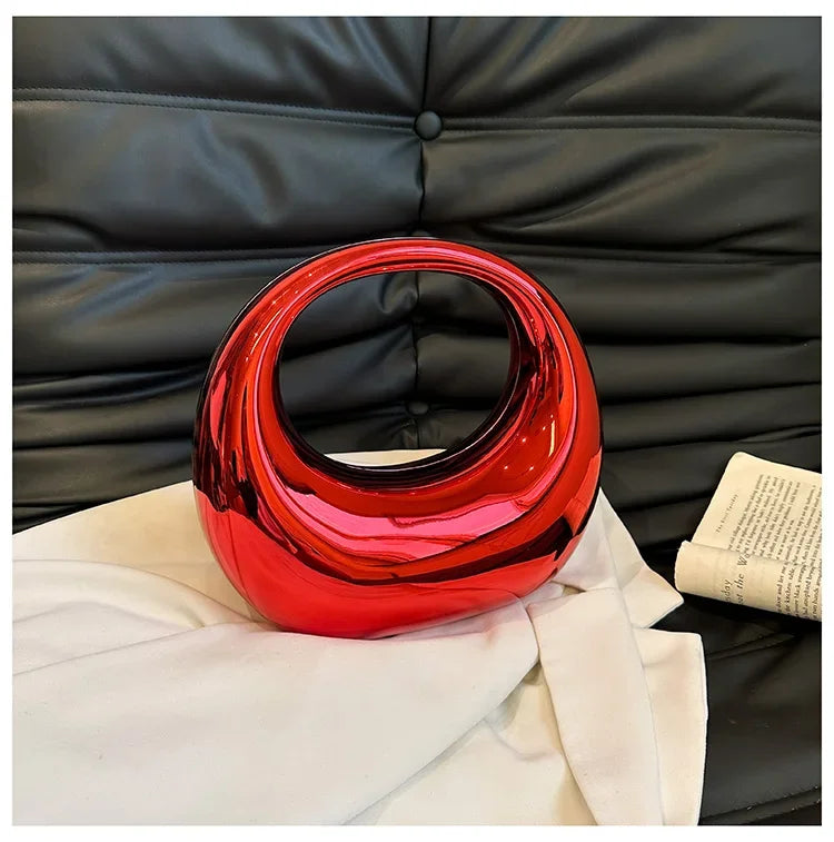 Hot Selling Creative Design Women's Top-Handle Bag PVC Metallic Luster Half Moon Banquet Women's Bag 2026 New Luxury Handbag