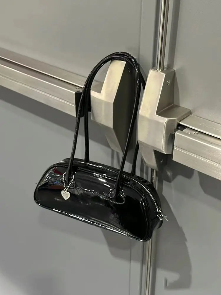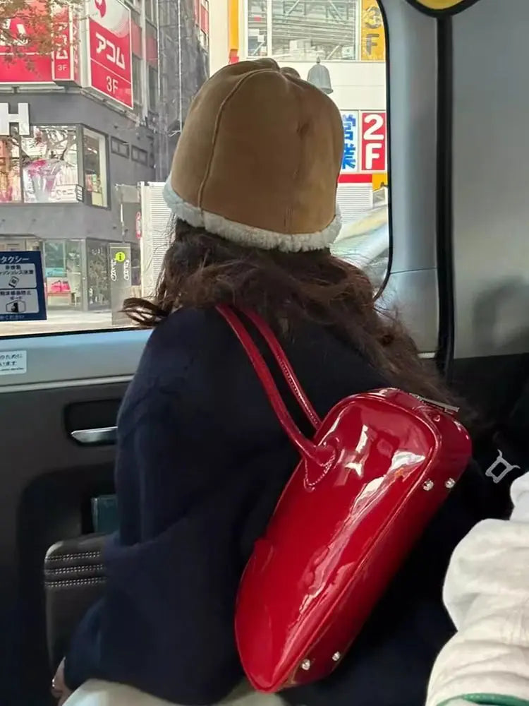 JIAERDI Red Underarm Bag Purse Women High Street Hot Girls Patent Leather Casual Handbag Female Vintage Bowling Bag Aesthetic