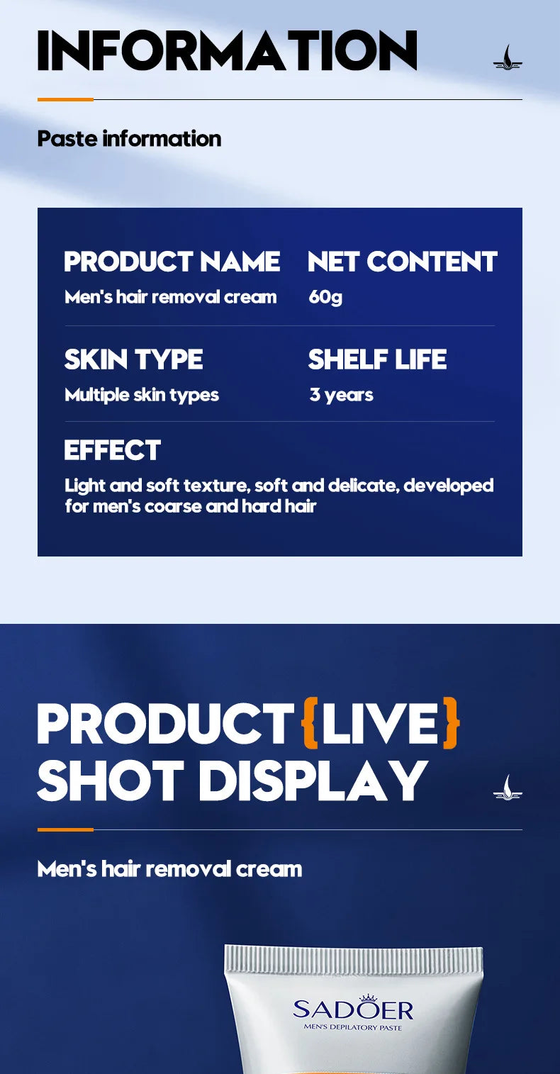 Men's Hair Removal Cream Permanent Epilator Private Area Painless Hair Remover Growth Inhibitor Spray Suitable Sensitive Skin