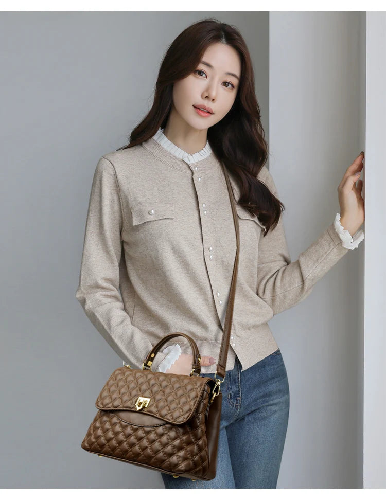 New Women's Soft Leather Shoulder Bags Multi-Layer Pockets Messenger Crossbody Bags Luxury Designer Female Handbags and Purses