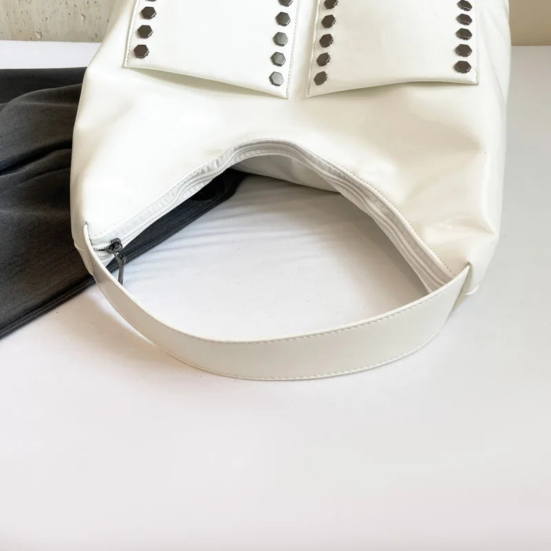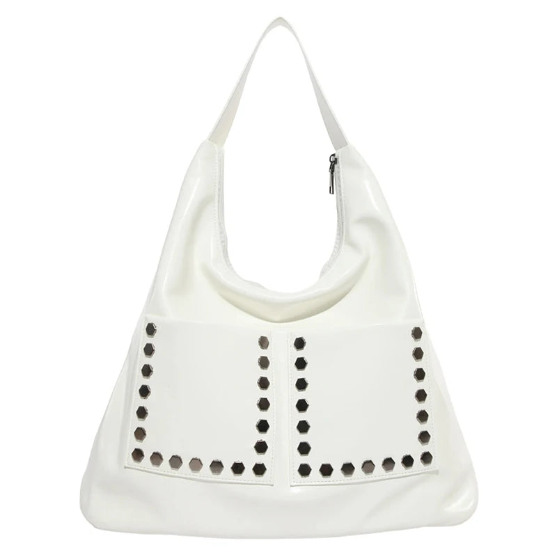 Retro Rivet Ladies Underarm Bag Fashion Girls Trend PU Leather Shoulder Bag Simple Design Style Large Capacity Women's Tote Bag