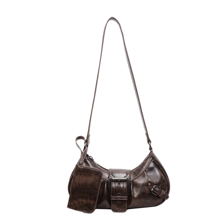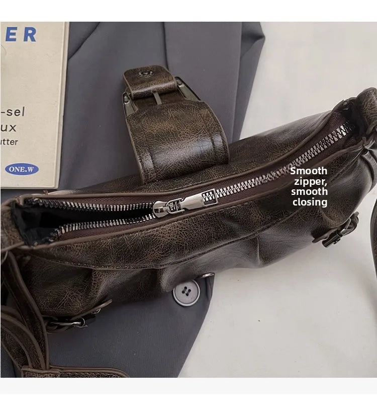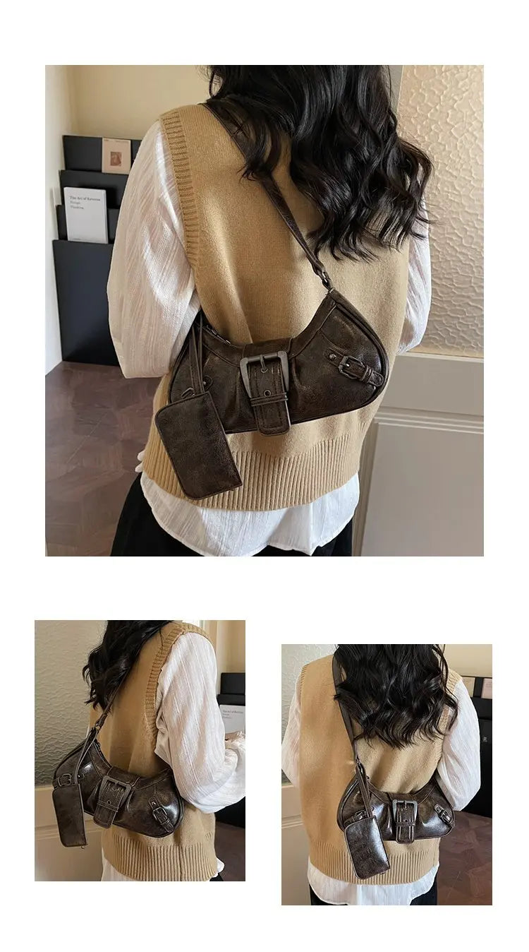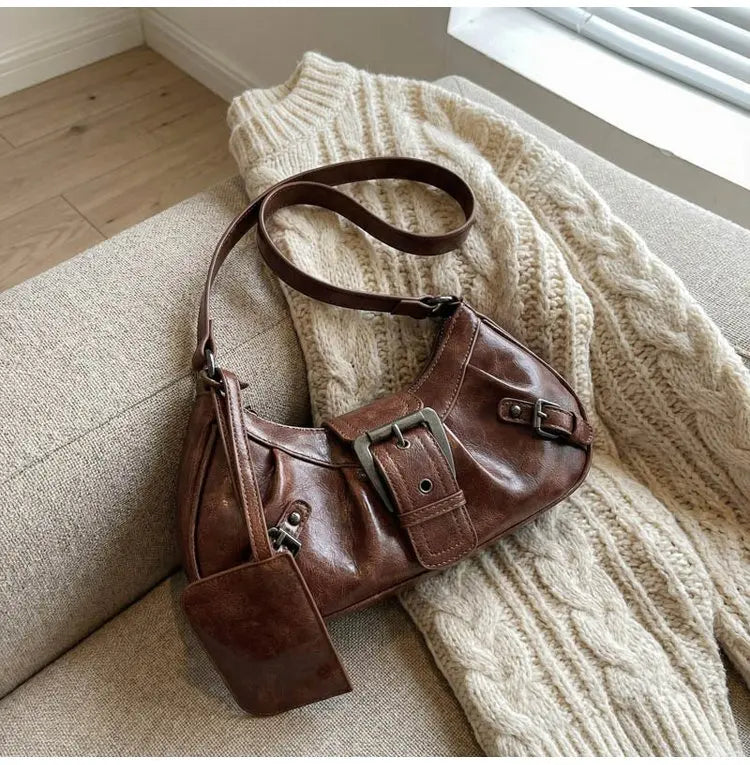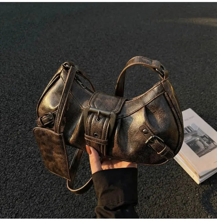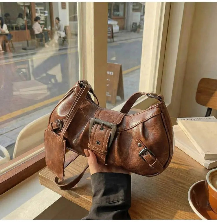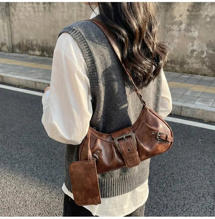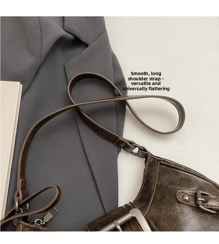 Shoulder Bags Y2K Retro Style Shoulder Bag, Maillard Pleated Rivet Armpit Bag, Fashionable Ladies Cool Leather Shoulder Bag