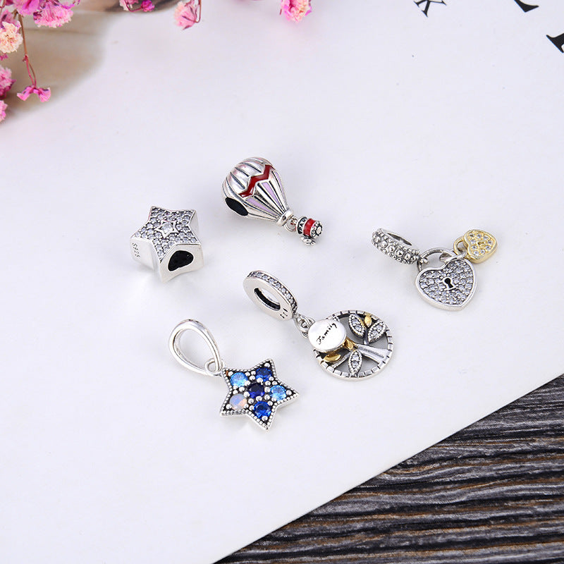 Product information: Type: scattered beads Treatment Process: Electroplating Color: five-pointed star, hot air balloon, five-pointed star pendant, tree, love Series: S043-47 Material: Silver Purity: 925 silver