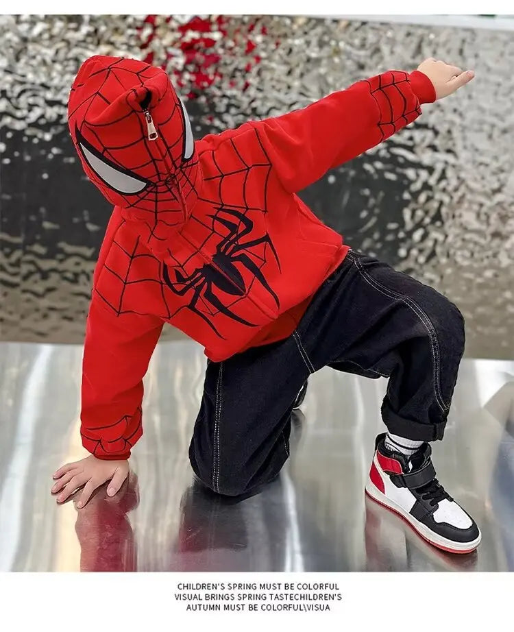 Spiderman Jacket Spring Children unisex Hooded Sweatshirt Cartoon Zipper Coats Kids Clothing Outdoors Keep Casual Outerwear