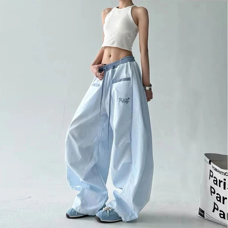 Streetwear Hip Hop Plaid cargo Pant Women Summer Design Scimitar Jazz Dance Wide Leg Pants High Waist Loose All Match Long Pants